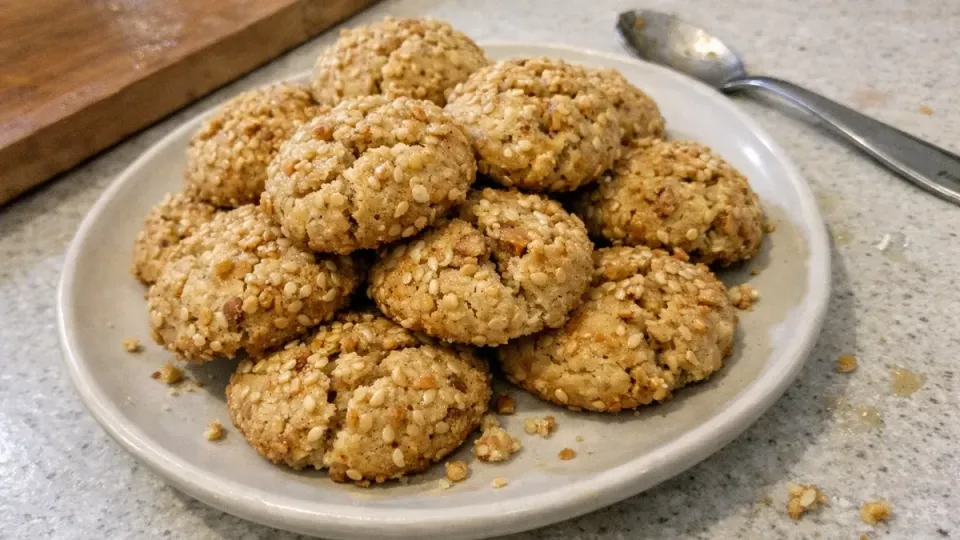 Bu tarifin en güzel yanı, malzemelerinin kolay bulunması ve doğru pişirme ile kurabiyelerin uzun süre tazeliğini koruması. Ölçülere sadık kalıp unu kontrollü eklediğinizde hamur toparlanır, susam-ceviz dengesiyle her lokmada belirgin bir lezzet yakalarsınız.