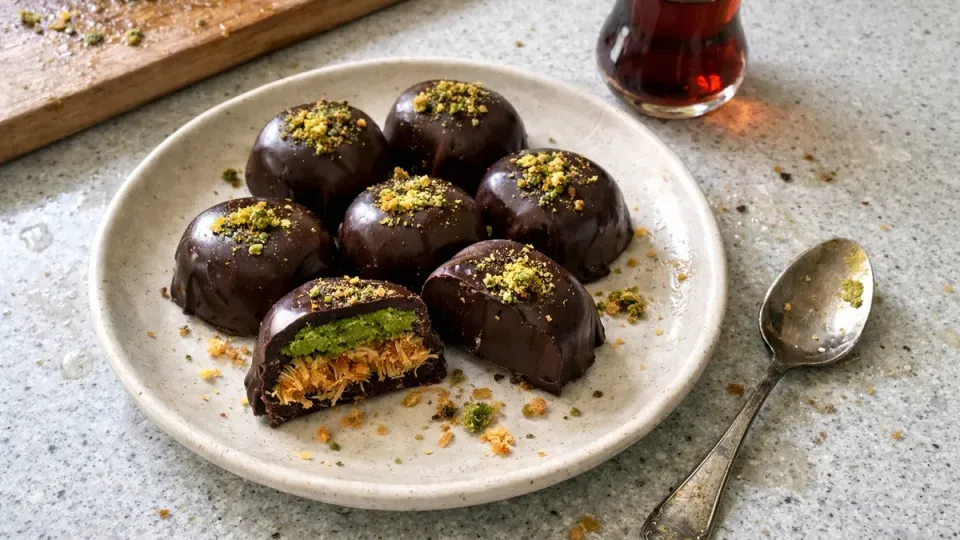 Doğru kıvamda eritilmiş çikolata, iyi kavrulmuş kadayıfın verdiği çıtırlık ve kaliteli fıstık ezmesinin yoğun aroması birleşince ortaya hem pratik hem de “pastane tadında” bir sonuç çıkar. Üstelik az malzemeyle, kalıp ya da muffin formunda kolayca hazırlanır.