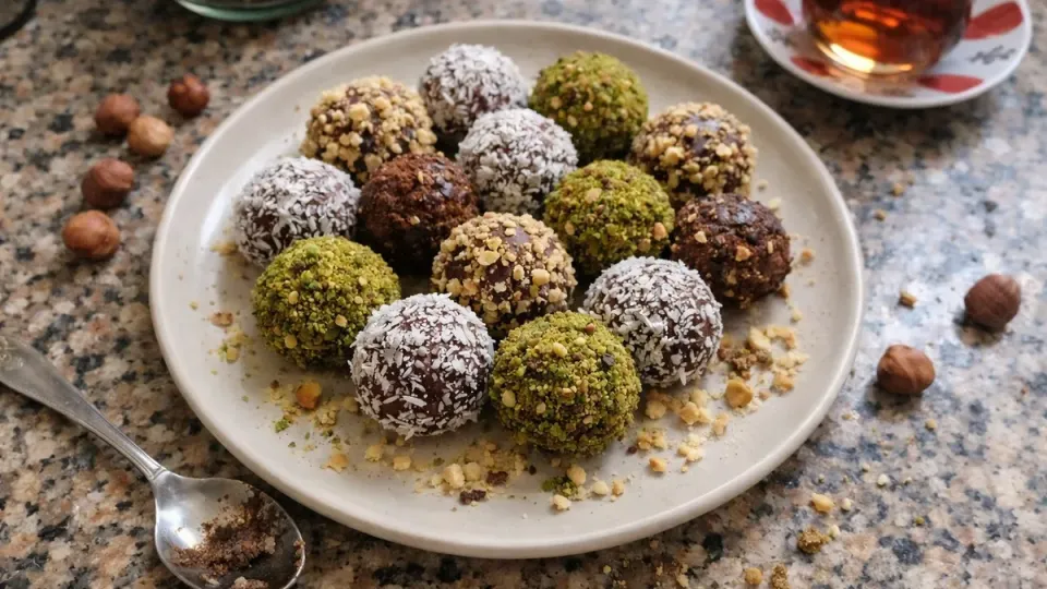 Truffle (truff) fikri, dünyada çikolata ganajının top şeklinde yuvarlanıp kaplanmasıyla bilinir; ev mutfaklarında ise bu yaklaşım sıkça bisküvili, pişmeyen karışımlarla uyarlanır. Kaplama seçenekleri (hindistan cevizi, fıstık, fındık) sayesinde tek bir hamurla farklı lezzetler elde etmek kolaylaşır.
