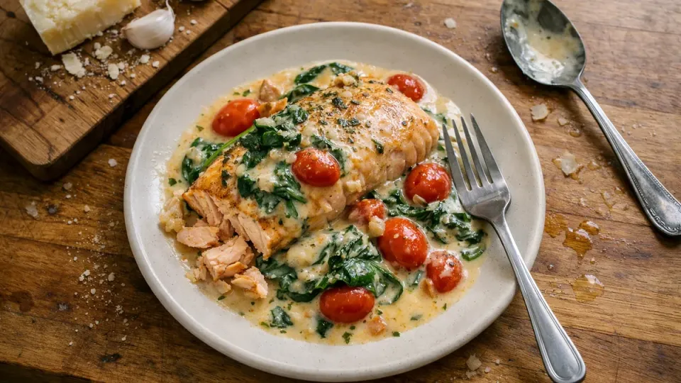 Tarif, tek tavada hazırlanması, somonun kurumadan pişirilmesi ve parmesanla derinleşen kremalı sosuyla dikkat çekiyor. Malzemelerin erişilebilir olması ve adımların netliği sayesinde her seferinde pürüzsüz sos ve sulu somon elde etmek mümkün.
